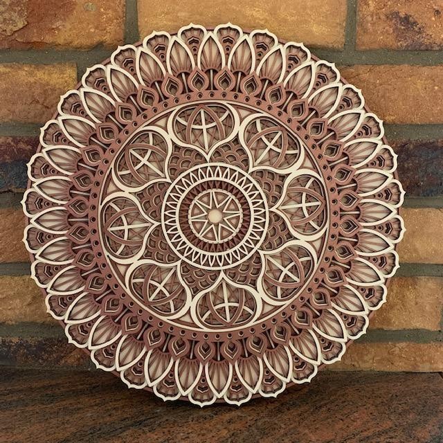 Mandala má silný vplyv na človeka na nevedomej úrovni. Nielen pri jej tvorbe, ale i pri pozorovaní mandaly dochádza k upokojeniu duše a získaniu vnútornej rovnováhy, preto sa skvelo hodí do interiéru či exteriéru.Mandala v ľubovolnej farebnej kombinácii, pri výbere farieb jednotlivych vrstiev možnosť zaslania náhľadu ako bude vyzerať Vami vybrané farebné prevedenie. 9 vrstiev topoľovej preglejky ručne farbenej a lepenej. Výška 40cm, šírka 40cm, hrúbka 2,8cm