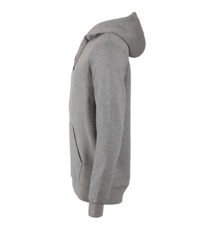 rovný strih s bočnými švami, kapucňa s podšívkou, na stiahnutie šnúrkou, vnútorná časť priekrčníka začistená páskou vo farbe povrchového materiálu, nakladané vrecko v štýle klokanky, dolný lem a manžety rukávov z rebrového úpletu 2:2 s 5 % elastanu, vnútorná strana počesaná