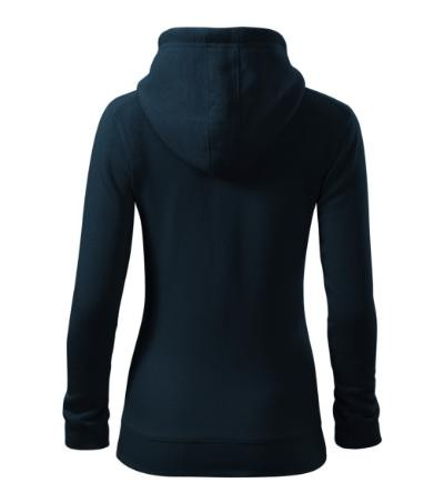 zľahka vypasovaný strih s bočnými švami, celozapínací kostený zips, kapucňa s podšívkou, na stiahnutie šnúrkou, vnútorná časť priekrčníka začistená páskou vo farbe povrchového materiálu, nakladané vrecká v štýle klokanky, dolný lem a manžety rukávov z rebrového úpletu 2:2 s 5 % elastanu, vnútorná strana počesaná