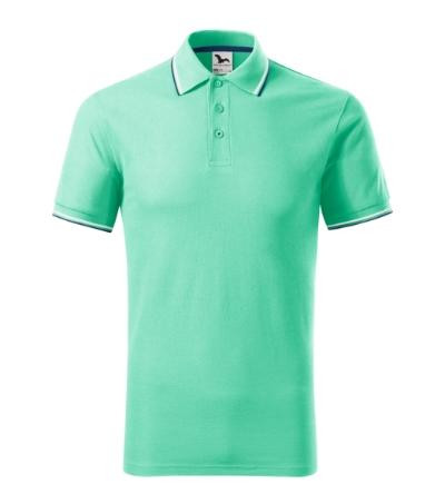 strih s bočnými švami, golierik z rebrového úpletu 1:1, 2 kontrastné pásiky na rukáve a golieriku, léga s 3 gombíčkami vo farbe materiálu, spodný gombíčok prišitý kontrastnou niťou, vnútorná časť priekrčníka začistená kontrastnou páskou, spevnenie ramenných švov páskou, rozparky v bočných švoch spevnené kontrastnou páskou, tovar II. triedy, na tento tovar sa nevzťahuje reklamacia