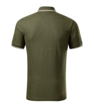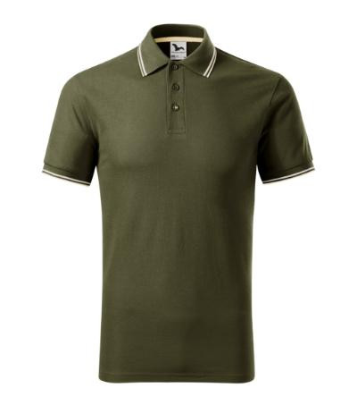 strih s bočnými švami, golierik z rebrového úpletu 1:1, 2 kontrastné pásiky na rukáve a golieriku, léga s 3 gombíčkami vo farbe materiálu, spodný gombíčok prišitý kontrastnou niťou, vnútorná časť priekrčníka začistená kontrastnou páskou, spevnenie ramenných švov páskou, rozparky v bočných švoch spevnené kontrastnou páskou, tovar II. triedy, na tento tovar sa nevzťahuje reklamacia