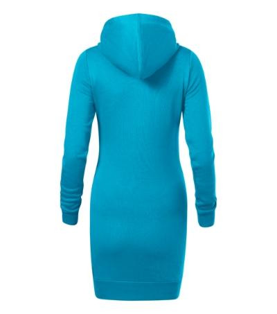 zľahka vypasovaný strih s bočnými švami, dĺžka nad kolená, kapucňa s podšívkou, na stiahnutie šnúrkou, vnútorná časť priekrčníka začistená páskou vo farbe 94, dolný lem a manžety rukávov z rebrového úpletu 1:1 s 5 % elastanu, nakladané vrecko v štýle klokanky, vnútorná strana nepočesaná