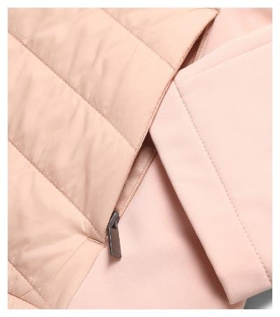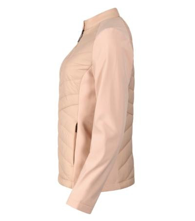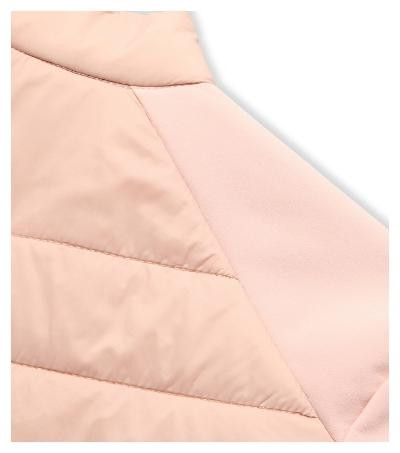 kombinácia prešívaného a softshellového materiálu, strih tvarovaný bočnými dielmi, stojáčikový gollier na gombík, celozapínací špirálový zips, bočné vrecká so špirálovým zipsom, vnútorné náprsné vrecko na zips, vstup pre branding v podšívke
