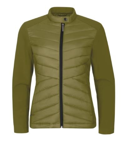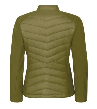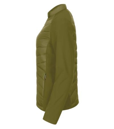 kombinácia prešívaného a softshellového materiálu, strih tvarovaný bočnými dielmi, stojáčikový gollier na gombík, celozapínací špirálový zips, bočné vrecká so špirálovým zipsom, vnútorné náprsné vrecko na zips, vstup pre branding v podšívke