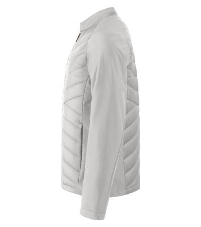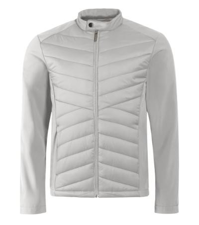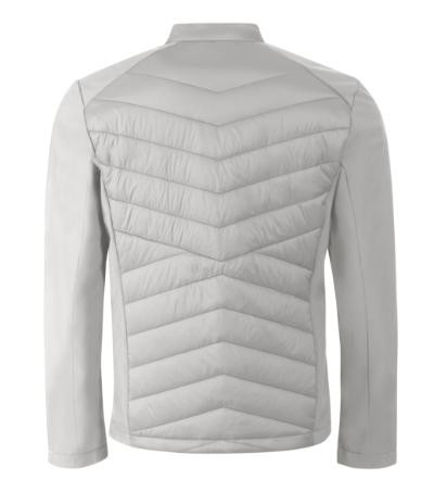kombinácia prešívaného a softshellového materiálu, strih s bočnými dielmi, stojáčikový gollier na gombík, celozapínací špirálový zips, bočné vrecká so špirálovým zipsom, vnútorné náprsné vrecko na zips, vstup pre branding v podšívke