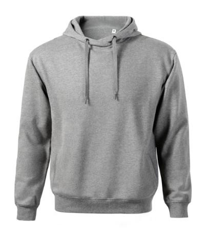 bez etikety - pripravené na rebranding, voľný strih s bočnými švami, kapucňa s podšívkou, na stiahnutie šnúrkou, neutrálny veľkostný štítok v bočnej časti priekrčníka, vnútorná časť priekrčníka začistená páskou vo farbe povrchového materiálu, nízkohlavicové rukávy, lištové vrecká v štýle klokanky, dolný lem a manžety rukávov z rebrového úpletu 2:2 s 5 % elastanu, vnútorná strana počesaná