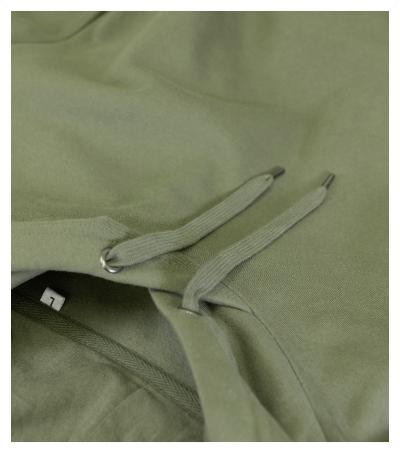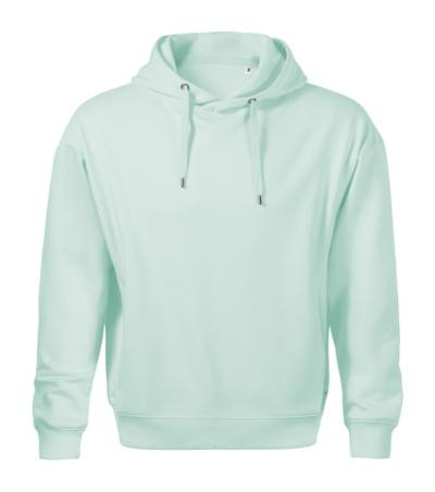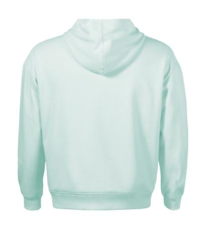 bez etikety - pripravené na rebranding, voľný strih s bočnými švami, kapucňa s podšívkou, na stiahnutie šnúrkou, neutrálny veľkostný štítok v bočnej časti priekrčníka, vnútorná časť priekrčníka začistená páskou vo farbe povrchového materiálu, nízkohlavicové rukávy, lištové vrecká v štýle klokanky, dolný lem a manžety rukávov z rebrového úpletu 2:2 s 5 % elastanu, vnútorná strana počesaná