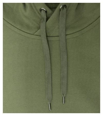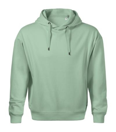 bez etikety - pripravené na rebranding, voľný strih s bočnými švami, kapucňa s podšívkou, na stiahnutie šnúrkou, neutrálny veľkostný štítok v bočnej časti priekrčníka, vnútorná časť priekrčníka začistená páskou vo farbe povrchového materiálu, nízkohlavicové rukávy, lištové vrecká v štýle klokanky, dolný lem a manžety rukávov z rebrového úpletu 2:2 s 5 % elastanu, vnútorná strana počesaná