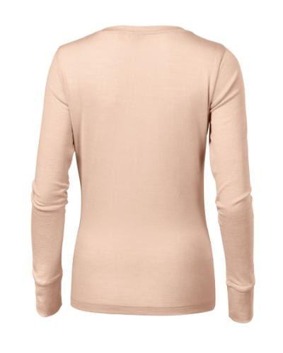 extra jemná merino vlna, nekrčivý a vysoko priedušný materiál, termoregulačné a antibakteriálne vlastnosti, schopnosť odvodu vlhkosti a absorpcie zápachu, priliehavý strih s bočnými švami, hrubší guľatý výstrih, úzky lem priekrčníka z povrchového materiálu, vnútorná časť priekrčníka začistená páskou z povrchového materiálu, spevnenie ramenných švov páskou, dlhé rukávy s manžetou, odporúčané sušiť vo vodorovnej polohe