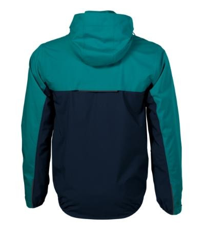 ľahký vodeodolný materiál s membránou, úprava BIONIC FINISH® ECO zabraňujúca prieniku vody, strih s bočnými dielmi, vodeodolný zips zakončený krytkou brady, snímateľná kapucňa na sťahovateľnú šnúrku, lemy rukávov nastaviteľné suchým zipsom, bočné vrecká s reverzným špirálovým zipsom, vnútorné náprsné vrecko na suchý zips, podlepené švy, vstup pre branding v bočnom šve podšívky, tvarovaný a mierne predĺžený zadný diel, dolný okraj stiahnutý pruženkou v bočnej časti, odvetrávateľné v zadnej časti , reflexné prvky