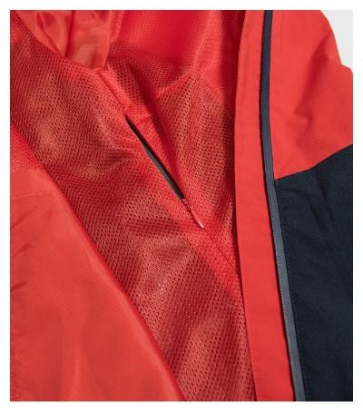 ľahký vodeodolný materiál s membránou, úprava BIONIC FINISH® ECO zabraňujúca prieniku vody, strih tvarovaný bočnými dielmi, vodeodolný zips zakončený krytkou brady, snímateľná kapucňa na sťahovateľnú šnúrku, lemy rukávov nastaviteľné suchým zipsom, bočné vrecká s reverzným špirálovým zipsom, vnútorné náprsné vrecko na suchý zips, podlepené švy, vstup pre branding v bočnom šve podšívky, tvarovaný a mierne predĺžený zadný diel, dolný okraj stiahnutý pruženkou v bočnej časti, odvetrávateľné v zadnej časti , reflexné prvky