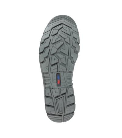 bezpečnostná obuv S3, ochranná oceľová špica, protiprepichová ocelová stielka, SRC - protišmyková podošva - duálny PU, E - absorpcia energie v oblasti päty, FO - odolná palivovému oleju, WRU - vode odolná, A - antistatická, certifikácia DGUV 112-191