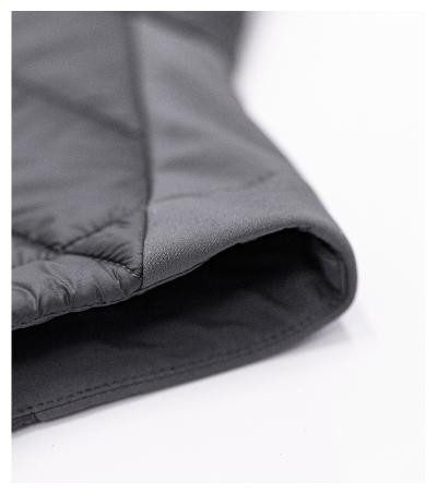 kombinácia prešívaného a softshellového materiálu, strih s bočnými dielmi, celozapínací špirálový zips s krytkou brady, bočné vrecká so špirálovým zipsom, vnútorné náprsné vrecko na zips, tvarovaný a mierne predĺžený zadný diel, vstup pre branding v podšívke