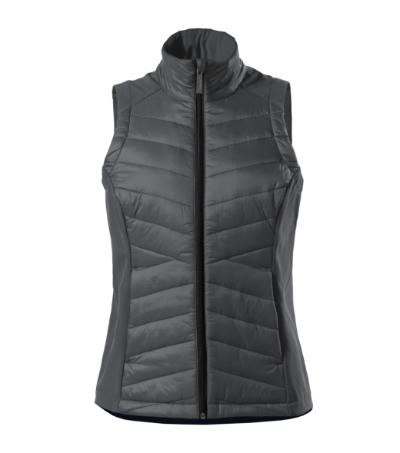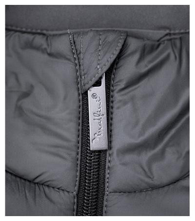 kombinácia prešívaného a softshellového materiálu, strih tvarovaný bočnými dielmi, celozapínací špirálový zips s krytkou brady, bočné vrecká so špirálovým zipsom, vnútorné náprsné vrecko na zips, tvarovaný a mierne predĺžený zadný diel, vstup pre branding v podšívke