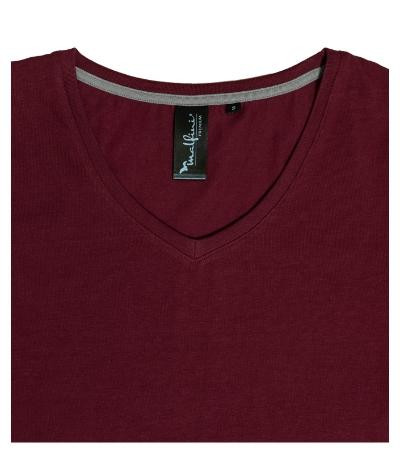 strečový materiál udržiavajúci stálosť tvaru, priliehavý strih s bočnými švami, prehĺbený výstrih v tvare V, úzky lem priekrčníka z rebrového úpletu 1:1 s 5 % elastanu, vnútorná časť priekrčníka začistená kontrastnou páskou, spevnenie ramenných švov páskou, krátke priliehavé rukávy