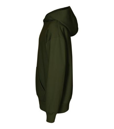 bez etikety - pripravené na rebranding, voľný strih s bočnými švami, kapucňa s podšívkou, neutrálny veľkostný štítok v bočnej časti priekrčníka, vnútorná časť priekrčníka začistená páskou, nízkohlavicové rukávy, nakladané vrecko v štýle klokanky, dolný lem a manžety rukávov z rebrového úpletu 2:2 s 5 % elastanu, vnútorná strana počesaná