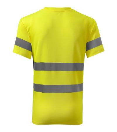 odev s vysokou viditeľnosťou, vonkajšia strana fluorescenčný polyester, vnútorná strana bavlnená, certifikované retroreflexné pruhy 3M, rovný strih s bočnými švami, lem priekrčníka z rebrového úpletu 1:1, spevnenie ramenných švov páskou, certifikácia podľa noriem EN ISO 20471/A1 (trieda 2) a EN ISO 13688