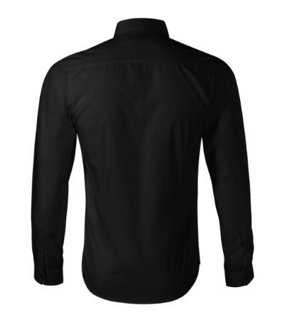 zúžený strih s bočnými švami, dvojté sedlo a zášivky na zadnom diele, dvojdielny košeľový golier, vystužené špičky goliera, predné kraje začistené légou, dlhé rukávy so šikmou manžetou na 2 gombíčky, perleťové gombíčky vo farbe materiálu (1 náhradný naviac), tvarovaný dolný okraj