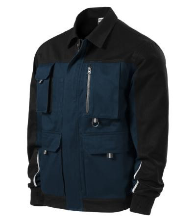 celozapínací kostený zips s chlopňou, záhyby na zadnom diele, 8 multifunkčných vreciek, mechové vrecká s chlopňou a lištové vrecká na zips, manžety rukávov z rebrového úpletu s 3 % elastanu, dolný okraj stiahnutý pruženkou v bočnej časti, kovové "D" pútko na kľúče a ID karty, dvojté prešitie pre vyššiu odolnosť, retroreflexné prvky