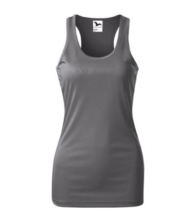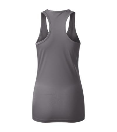 hladký rýchloschnúci materiál, zľahka vypasovaný strih s bočnými švami, vykrojený zadný diel tielka (racerback), hrubší guľatý výstrih, priekrčník a prieramky lemované povrchovým materiálom, ideálne pre šport a pohybové aktivity, materiál vhodný pre sublimačnú potlač (svetlé farby)