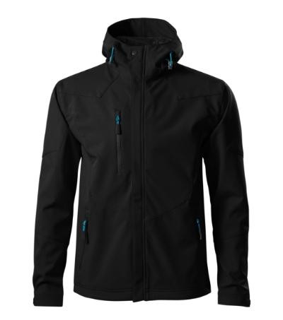 3vrstvový softshell s membránou, efektná textúra softshellu, úprava Nanotex® zabraňujúca prieniku vody, celozapínací špirálový zips s chlopňou, kapucňa na stiahnutie šnúrkou, kapucňa a lemy rukávov nastaviteľné suchým zipsom, vrecká s reverzným špirálovým zipsom, náprsné vrecko, tvarovaný a mierne predĺžený zadný diel, kontrastné prvky, Údržbové informácie pre softshellový materiál
