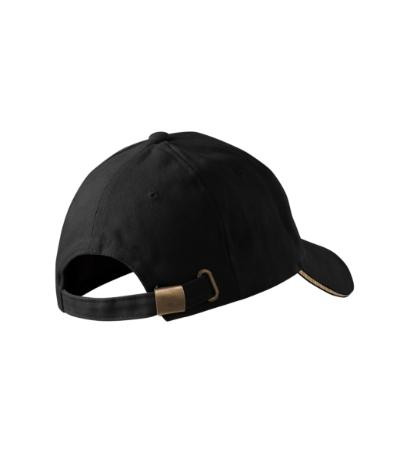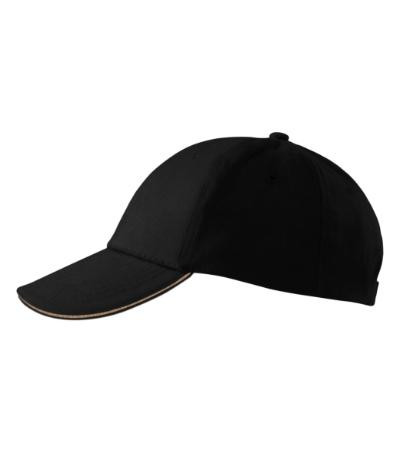 šesťpanelový strih, vystužené 2 predné panely, prešívaný, zľahka prehnutý šilt s kontrastným pásikom, obšité vetracie otvory, potiaca páska, veľkosť nastaviteľná mosadzným cvokom