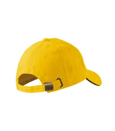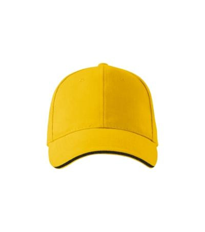 šesťpanelový strih, vystužené 2 predné panely, prešívaný, zľahka prehnutý šilt s kontrastným pásikom, obšité vetracie otvory, potiaca páska, veľkosť nastaviteľná mosadzným cvokom