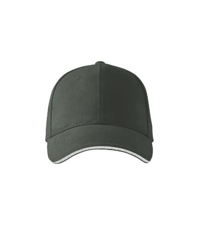 šesťpanelový strih, vystužené 2 predné panely, prešívaný, zľahka prehnutý šilt s kontrastným pásikom, obšité vetracie otvory, potiaca páska, veľkosť nastaviteľná mosadzným cvokom